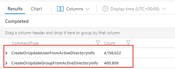 Bingo, we have lots of commands related to user synchronization from active directory. This happens because the frequency of user active directory sync was increased and also some customers have really big Active Directory, with a lot of users. Each time the system scan active directory, thousands of commands are launched, and if the sync happens once an hour, or more frequently, you got some million of commands in an entire month.
