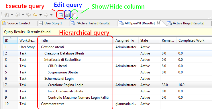 First impression is really good, I’m able to do query against Work Item, defining and editing builds, creating query etc etc. The Work Item viewer has all the functions of Team Explorer, and you can edit the query, choose column to view etc etc, as visible in Figure 5.