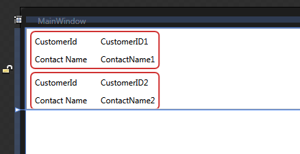 Now that I created the grid with four cells, I need to bind the label of the second column to the right properties of the Customers object, so I simply select the label, then ask to DataBind the Content: