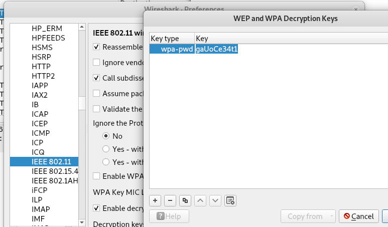 Wireshark file is named after one of the user, this could not be a coincidence, that file was probably connected to the user, but how? The only two files that I have in my mind is the cap file and the other file that seems to contains random strings, the only thing that comes in my mind is that one of the string can indeed be the key of wireless encryption. Aircrack-ng confirmed my opinions. ![]()
