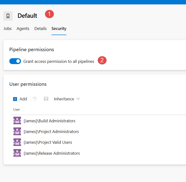 How can you solve the problem? The simplest solution is going to the administration page of the project, select the pool you want to use for the build and finally grant permission to every pipeline. ![]()